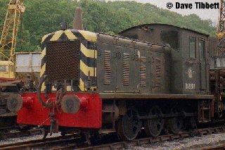 British Railways built fifteen of these locomotives in 1952, outshopping them in the then standard black livery, apparently numbering them as 11100-11103 and 11105-11115. In 1957 they were renumbered as D2200-D2214. Similar to the BR class 03 shunter, they were fitted with a 204hp Gardner engine, fluid coupling and a five speed epicyclic gearbox. The class were distributed widely around the BR network and several, though not D2207, were fitted with skirts to operate the Wisbech and Upwell Tramway. D2207 was withdrawn from BR service, as a shunter at Crewe Locomotive Works, at the end of 1967, being purchased by CAEC Howard Ltd of Hemel Hempstead. It was acquired from there in 1973, becoming the shed pilot at Grosmont for several years. It also made infrequent trips an light passenger trains around this time, before standing out of traffic awaiting suitable spares. Overhauled and restored to working order in 1982, the locomotive was transferred to New Bridge Permanent Way Depot. It saw quite regular service for the P Way department and was usually a star at Levisham during the Thomas weekends. It was also a popular locomotive on diesel gala shuttles. Recently, however, it has been 'confined to base' and is in need of retyring. |